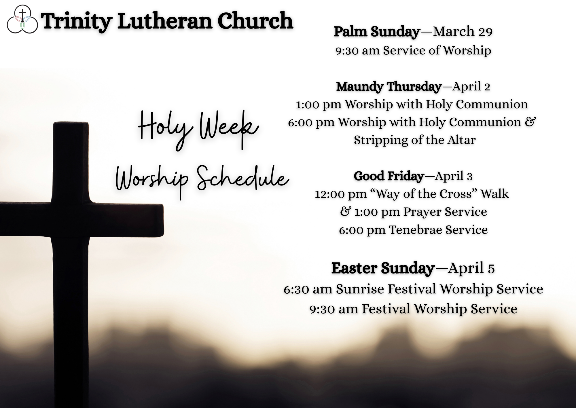 Divine Services (w/ Holy Communion) Sundays at 9:30 AM,